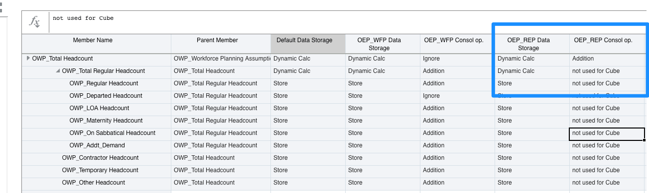The reporting cube and the WFP cube share the parent OWP_Total Headcount. In the WFP cube it is a dynamic calculated parent account and in the ASO cube it is a level 0 account. The data map is not optimally designed, and you cannot select the exclude dynamic calc option because no data will move over.